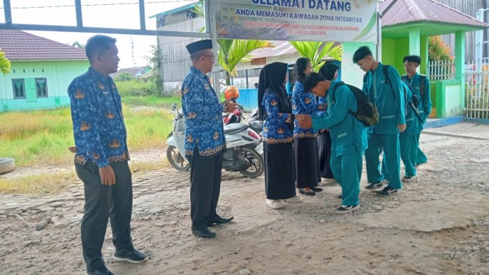 Tanjung Jabung Timur (man2tjt)_Pemandangan menyejukkan terlihat setiap pagi di gerbang utama MAN 2 Tanjung Jabung Timur. Jajaran majelis guru tampak berdiri rapi, menyambut kedatangan para siswa dengan senyuman ramah, jabat...