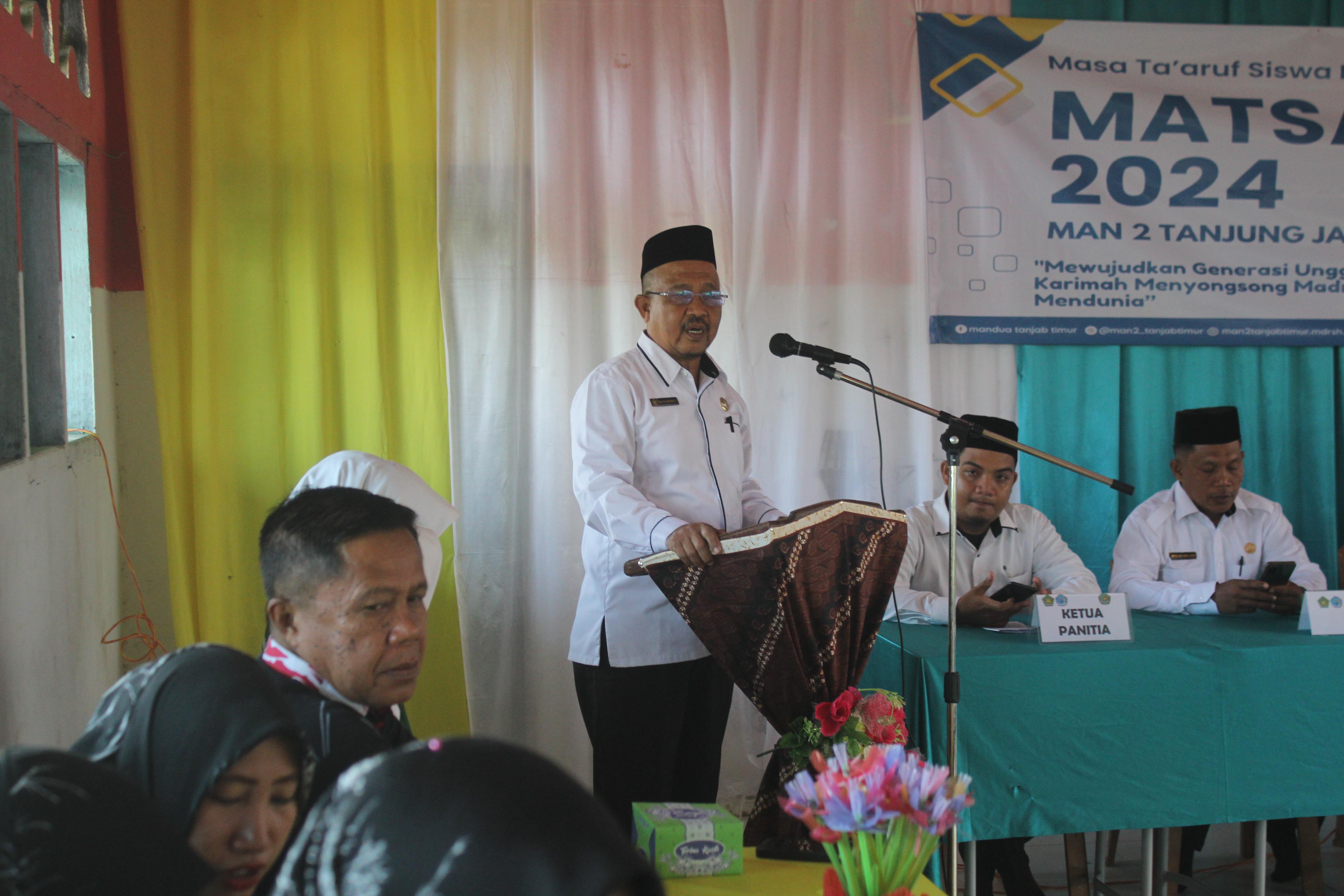 Nipah Panjang ( MAN 2 Tanjabtim)_ Masa ta’aruf siswa madrasah (MATSAMA) MAN 2 Tanjung Jabung timur dibuka langsung kepala Madrasah H.Supangat senin (15/7) bertempat di ruang Aula MAN 2 Tanjung jabung timur.