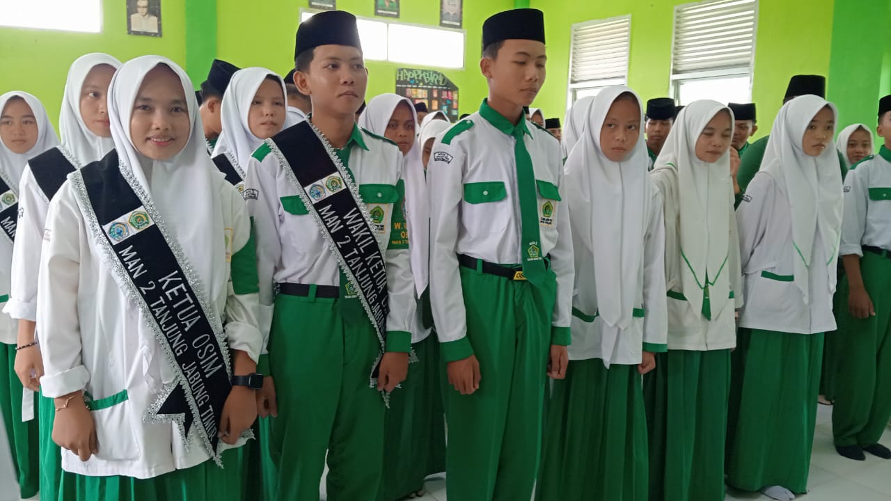Tanjung Jabung Timur (MAN 2 Tanjab timur)_ Kepala Madrasah Aliyah Negeri (MAN) 2 Tanjung Jabung Timur secara resmi melantik pengurus Organisasi Siswa Intra Madrasah (OSIM) periode 2025-2026 dalam sebuah upacara khidmat yang digelar di aula madrasah pada Senin, 20 Januari 2025. Pelantikan ini dihadiri oleh para guru, staf, serta seluruh siswa MAN 2 Tanjung Jabung Timur.