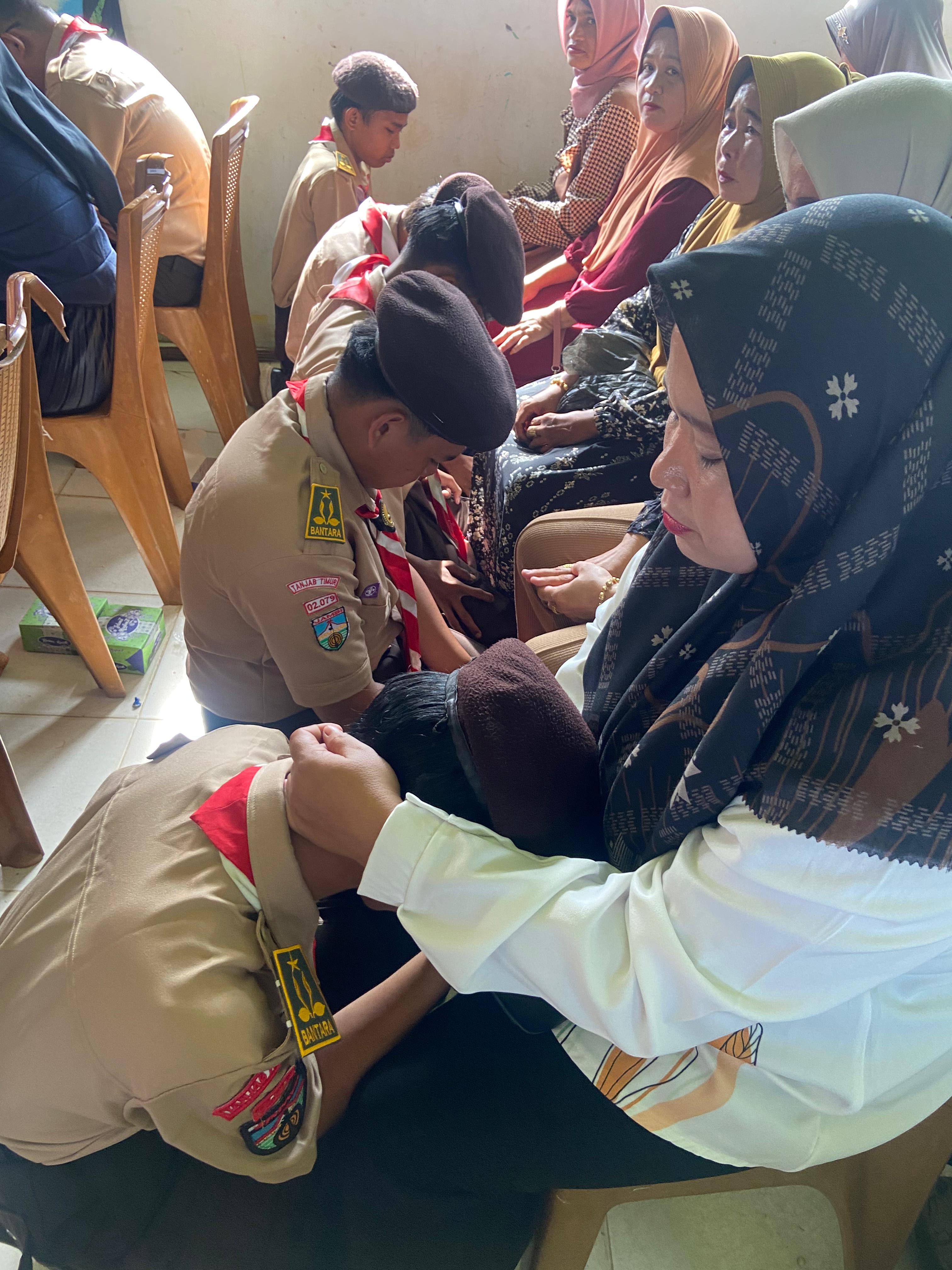 Tangis haru mulai pecah saat para anggota yang baru dilantik sungkem di depan orang tuanya dan diiringi pembacaan puisi yang menambah suasana semakin syahdu. Para anggota pramuka ini sebelum dikukuhkan melewati berbagai tahap pembinaan dan ujian. Dengan penuh kebanggaan, mereka mengucapkan janji Pramuka tri satya di hadapan pembina dan rekan-rekan mereka. Banyak di antara peserta yang tak kuasa menahan air mata karena merasa bangga telah melewati berbagai tantangan dalam proses seleksi dan latihan.