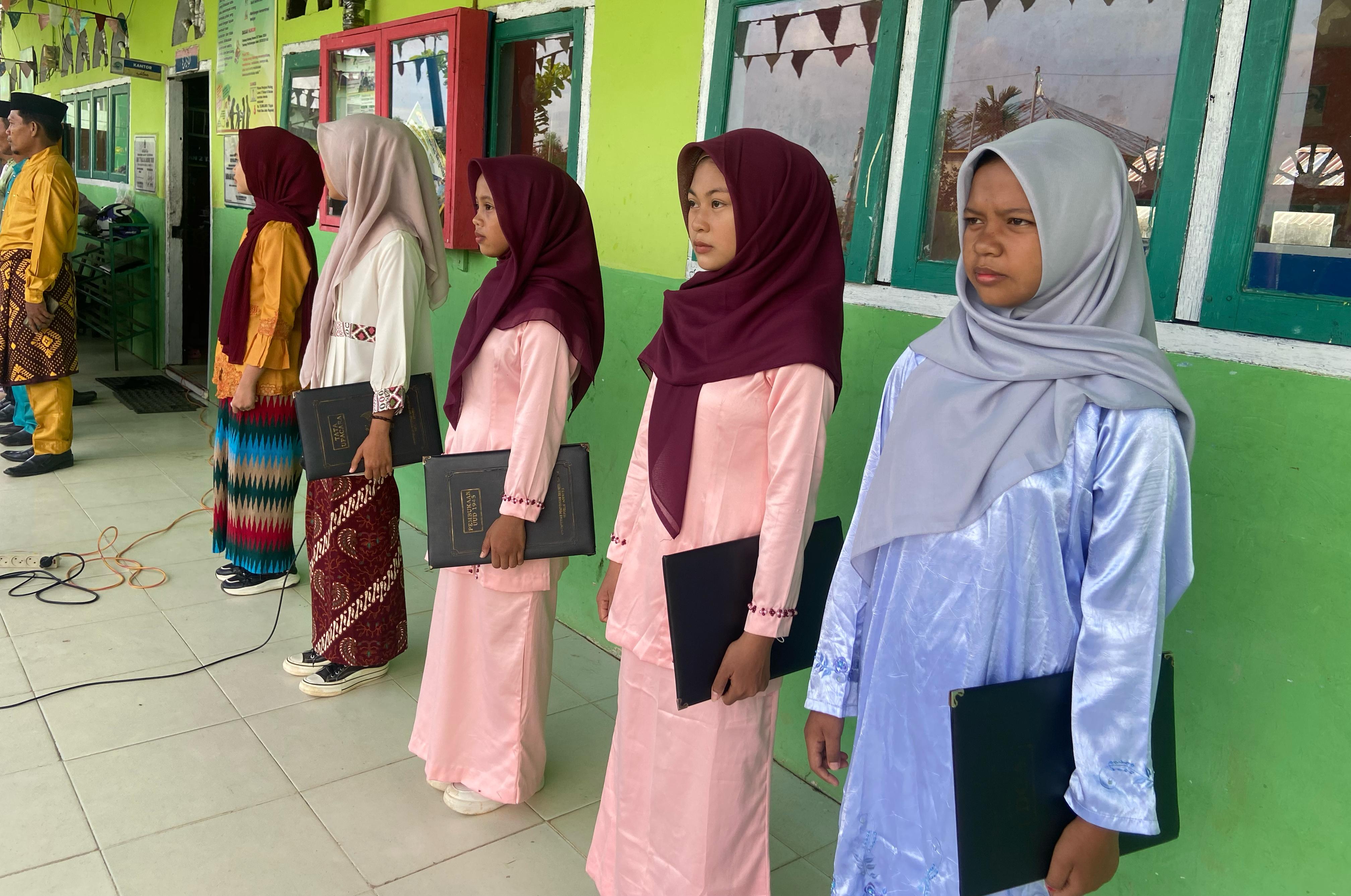 Para guru dan staf juga turut mengenakan pakaian adat sebagai bentuk dukungan terhadap kegiatan ini.