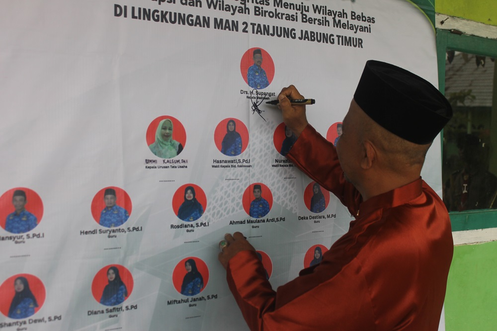 Dengan penandatanganan ini, MAN 2 Tanjung Jabung Timur resmi memulai perjalanan menuju madrasah yang unggul, bersih, dan berintegritas tinggi.