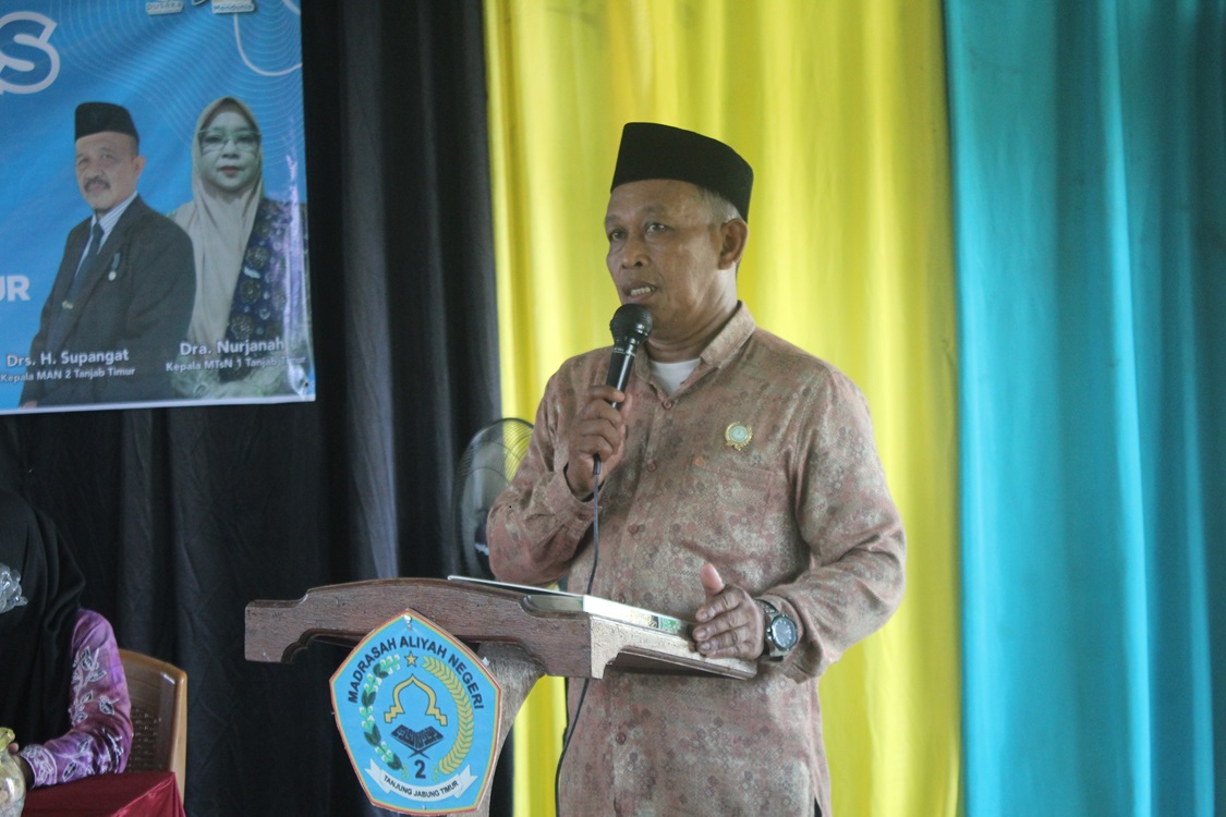 Nipah Panjang (MAN 2 Tanjabtim)—Pengawas Pendidikan Kementerian Agama Kabupaten Tanjung Jabung Timur secara resmi membuka kegiatan Bimbingan Teknis (Bimtek) Implementasi Kurikulum Merdeka dengan Pembelajaran Mendalam Berbasis Kurikulum CINTA , yang dilaksanakan di Aula MAN 2 Tanjung Jabung Timur.