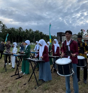 Nipah Panjang – Delapam anggota Drumband Bahana Mutiara II MAN 2 Tanjung Jabung Timur mendapat kehormatan untuk tergabung dalam tim pengiring lagu kebangsaan Indonesia Raya pada upacara peringatan HUT Kemerdekaan RI ke-78 tingkat Kecamatan Nipah Panjang, Minggu (17/8). Dimana drumband pengiring lagu Indonesia raya tahun ini merupakan gabungan dari MAN 2 Tanjung jabung timur,SMKN 2 Tanjung jabung timur dan SMAN 3 Tanjung jabung timur