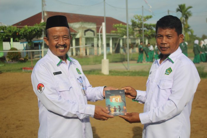 Setelah menerima buku secara simbolis, Drs.Supangat, langsung menyerahkan buku tersebut kepada Kepala Perpustakaan MAN 2 Tanjung Jabung Timur, Rosdiana, S.Pd.I. Penyerahan ini bertujuan agar buku tersebut dapat segera didata dan masuk ke dalam koleksi perpustakaan madrasah.