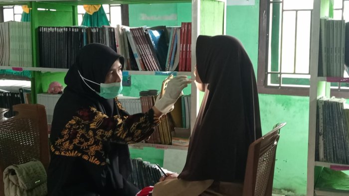 Kegiatan pemeriksaan kesehatan tersebut meliputi pemeriksaan tekanan darah, berat badan, tinggi badan, telinga dan kesehatan gigi serta mata. Petugas medis dari PKM Nipah Panjang terjun langsung memberikan pelayanan dan edukasi kepada para siswa mengenai pentingnya menjaga pola hidup sehat sejak dini.