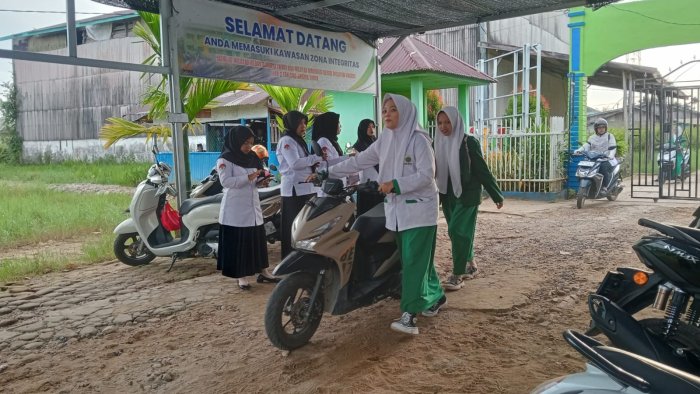 Tanjung Jabung Timur (man2tjt)_ Matahari baru saja terbit, namun suasana hangat sudah terasa di gerbang utama MAN 2 Tanjung Jabung Timur. Setiap pagi, sebelum bel masuk berbunyi, para guru yang tergabung dalam Majelis Guru telah berdiri rapi untuk melaksanakan tradisi sambut siswa dengan budaya 3S: Senyum, Sapa, dan Salam.
